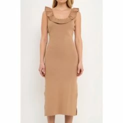 The epitome of femininity, this Ruffle Neckline Midi Slit Dress by Endless Rose was designed with the modern woman in mind. The luxurious knit fabric falls gracefully over your curves, while the ruffle neckline and sleeveless silhouette add a touch of romance. The midi length and side slit provide just the right amount of drama, and the slip-on design means you can dance the night away without a care in the world. Go ahead and indulge in a little luxury-you deserve it.
