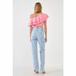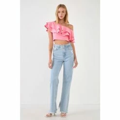 Add some drama to your outfit with this Ruffled One Shoulder Top. The one shouldered silhouette is unique and eye-catching, while the ruffle detail adds a touch of femininity. The crop length is perfect for showing off your best assets, while the invisible size zipper ensures a perfect fit. The top is lined for your comfort.