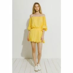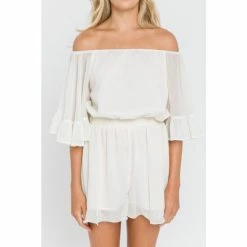 Introducing your new staple for the Season. This romper is simply stunning and features beautiful ruffle sleeves and an off-the-shoulder design. Perfect for any social gathering with your friends or date night.