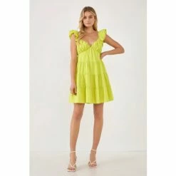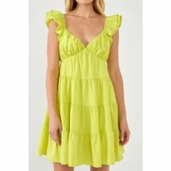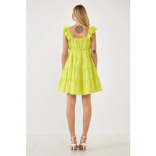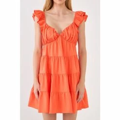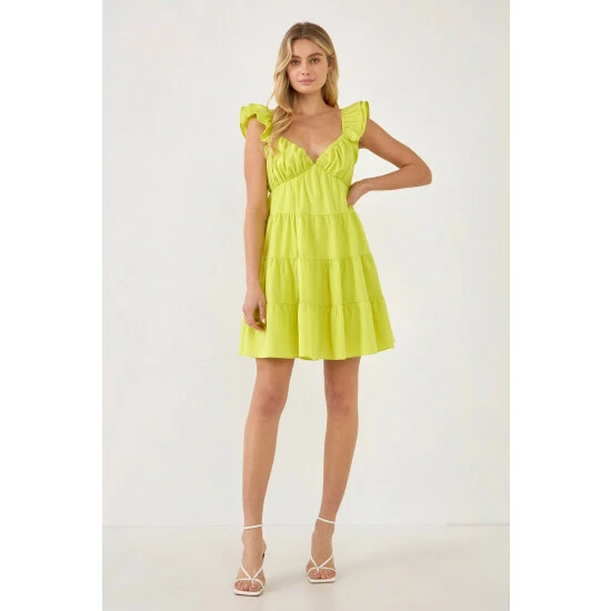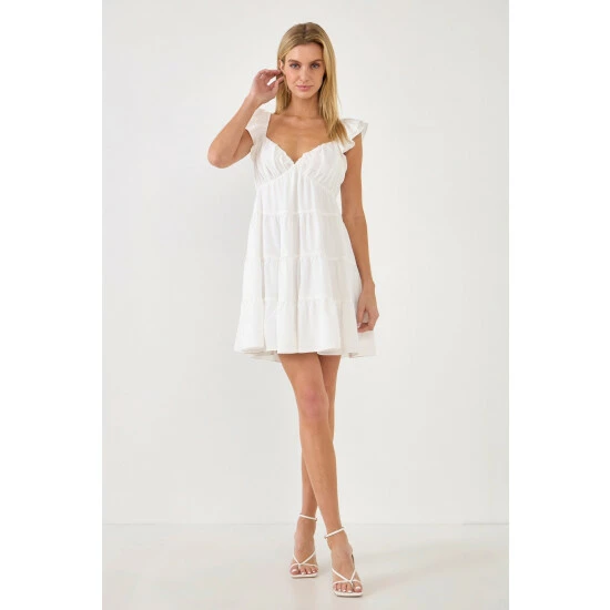The perfect dress for your next special occasion. This dress is sure to turn heads. With a ruched sweetheart neckline and pretty ruffled shoulders, it has a romantic feel. The bodice is tiered and features a flounce hem that makes it extra special. We love the way this dress hugs your curves and falls to just the right length. Plus, it’s lined for added comfort.