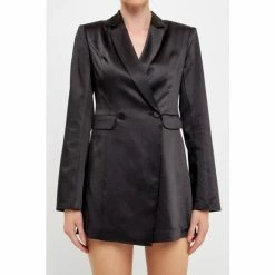 Looking for something sleek and stylish? Check out this Satin Blazer Romper from Endless Rose. With V-neckline, long sleeves, and front button closure, this romper is sure to turn heads. The zipper closure gives it a bit of edge, while the satin fabric keeps it looking chic. Pair it with some nude heels and you’re good to go.