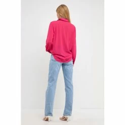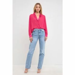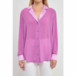 Spruce up your work wardrobe with this satin chiffon dress shirt. The loose fit and front buttons give you a stylish and comfortable look, while the contrast fabric collar and cuffs add a touch of sophistication. Pair this shirt with slacks and heels for a professional ensemble, or dress it down with jeans and flats for a more casual look.