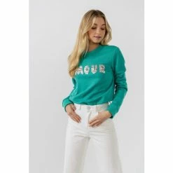 Be stylish and keep warm this fall with this statement crewneck sweater. This beautiful, sequin and bead-embellished sweater is a fun way to express a style statement Pair with jeans and boots for a chic look that will take you from school to football games.