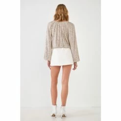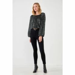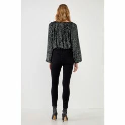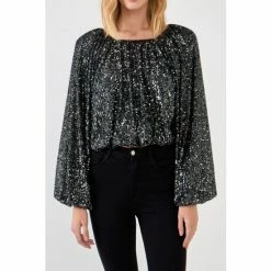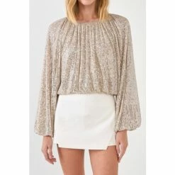 The blouson top is a classic style that is always in fashion. With a flattering cropped bodice and a lightweight feel, this blouse is sure to become your go-to top. The sequins add a touch of sparkle and shine. Pair this top with a denim skirt for a fun, casual look or dress it up with some black trousers and heels for a night out.