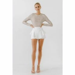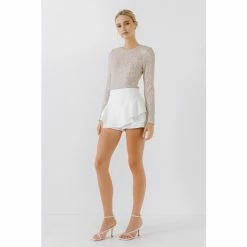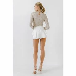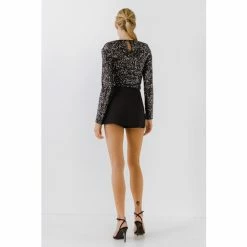 The right kind of sparkle can really elevate your wardrobe. The sequins bodysuit features a round collar and long sleeves. This sexy yet sophisticated look is perfect for any occasion. Pair with heels and a leather jacket for a night out, it’s the perfect party piece for a special night out.