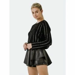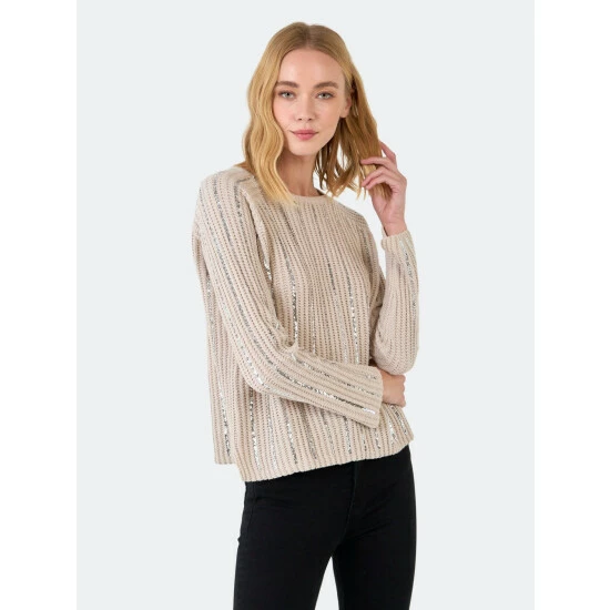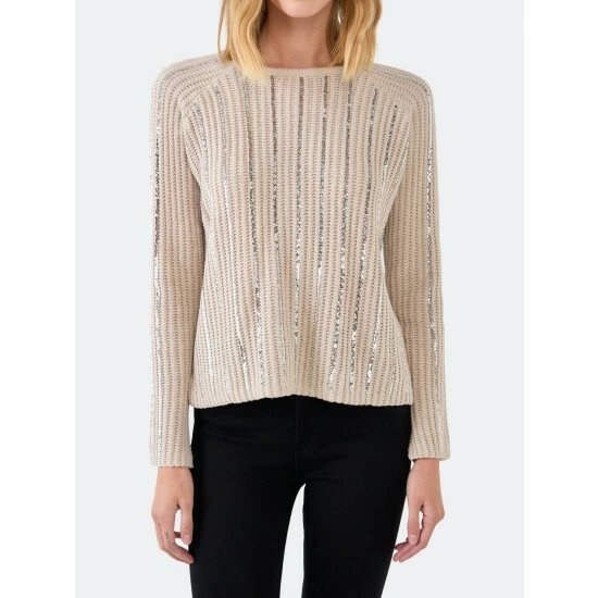 There’s no better way to keep warm this winter than with this cozy long sleeve sweater. Whether you’re heading to a holiday party or just curling up on the couch, this sweater is the perfect addition to your winter wardrobe. With a flattering silhouette and sequin detail, this is one of our favorite sweaters of the season.
