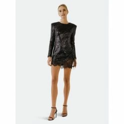 This sequins dress with lace insertion is a piece of art. Sophisticated and elegant, while at the same time managing to look extremely sexy and chic. The fitted dress design makes it an elegant piece of clothing that is perfect for a formal or a very special occasion. This is the feminine and timeless piece of clothing that you can wear over and over again. It is designed in a simple and classic cut, which makes it appropriate for any type of figure.