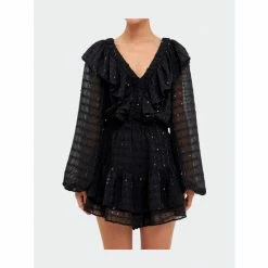 You will absolutely love this Endless Rose Sequins Ruffle Romper. It is the perfect combination of fun and flirty. The sequin embellishments add just the right amount of sparkle and the tiered ruffle shorts are sure to turn heads. It is also extremely comfortable with an elastic waistband and back zipper closure. You will want to wear this romper over and over again.
