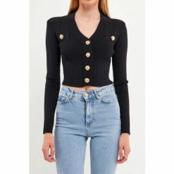 Strut your stuff in this stylish cardigan. Cropped to show off your curves, this Shank Button V-neckline Cardigan is perfect for showing some skin. With a chic and modern design, this cardigan is a must-have for any fashionista. With long sleeves and stylish shank buttons, this cardigan will keep you cozy all autumn and winter long.