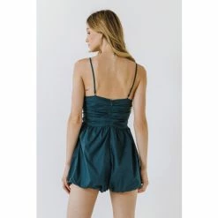 The perfect way to stay comfortable and stylish at the same time. This blouson romper is so versatile, you can wear it with heels for a night out or with sandals for a day at the beach. Shirred blouson shorts are a flattering length and the shirred detail on the chest adds a feminine touch.
