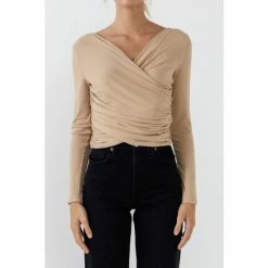 Add a touch of elegance to your look with this chic long sleeve top. Featuring a shirring detail, this top will hug your curves and give you a flattering silhouette.