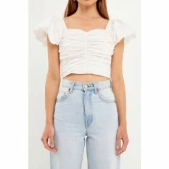 Turn heads in this sexy crop top with shirring detail and puff sleeves. This crop top is perfect for a night out. With a zipper on the back, it’s easy to take on and off. The balloon ruffle gives it some serious style, while the shirred top ensures a comfortable and flattering fit. Pair this crop top with your favorite jeans or skirt for a look that will get you noticed.