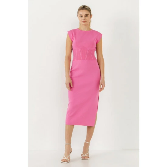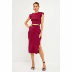This pink skirt is perfect for showing off your curves. The side slit detail makes it extra sexy, and the matching top is available to complete the look. This skirt is professional enough for work, but also sexy enough for a night out.