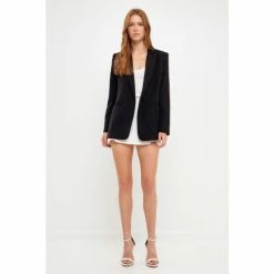 This blazer is perfect for a modern woman who wants to look stylish and professional. Its boxy fit and skinny lapel give this jacket a unique and stylish look. And with a center front button closure, it’s easy to wear. Whether you’re dressing up for work or going out with friends, this blazer is the perfect accessory.