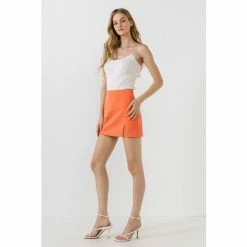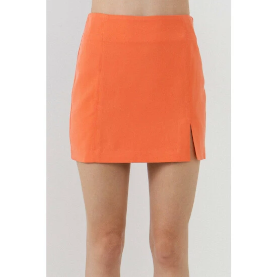 The Slit Detail Mini Skirt is the perfect skirt for a summer day. With its bright orange color and side slit, this skirt will make you stand out from the crowd. The matching blazer is also available, making it the perfect outfit for a summer party.
