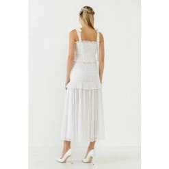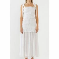 This smocked maxi will make you look and feel like a queen. Who doesn’t love a maxi with some pretty ruffle detailing? Not only is this piece perfect for any formal occasion, but the comfortable fit will make you never want to take it off. With its sheer fabric and fitted design, this maxi is sure to turn heads. Add this to your wardrobe and get ready for many compliments.