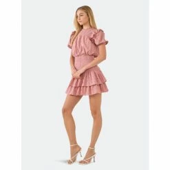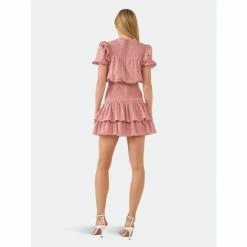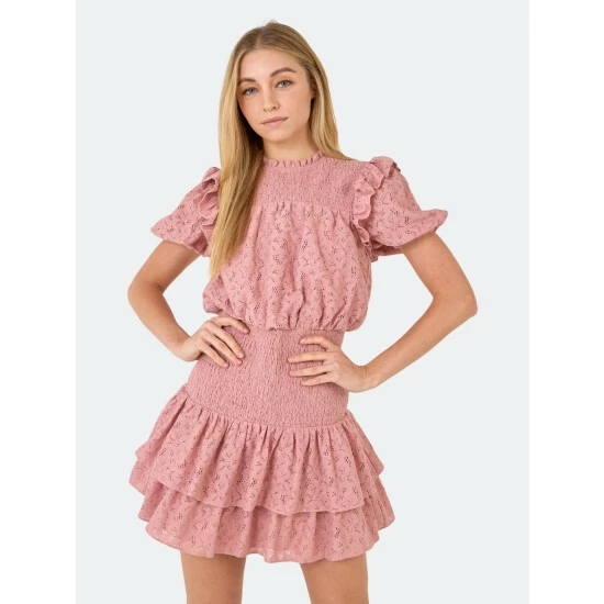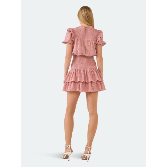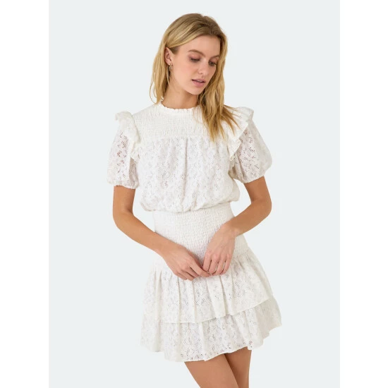 – All over lace- Smocked drop waist- Short sleeve- Lining- Mini length- Total length: 34″, Bust: 35″