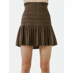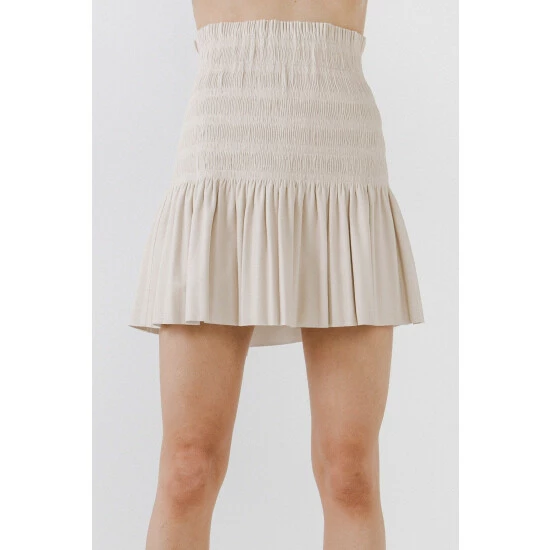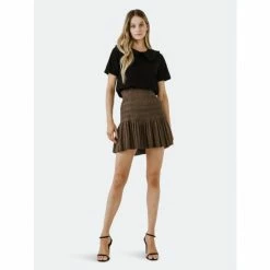 Feeling feminine and flirty? A perfect choice for all your formal occasions, this vegan leather mini skirt will get you noticed. The pleated design adds an element of intrigue to the timeless pencil skirt silhouette. You’ll love how comfortable this skirt is to wear.