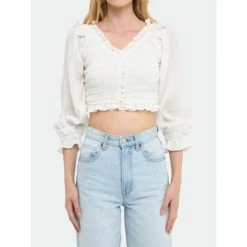 This top is sure to get you noticed. With its smocked detail and playful ruffle trim, this crop length top is perfect for a night out. Made with 3/4 sleeves, it’s airy and comfortable for any occasion. Style this top with a skirt or jeans for a versatile look that you can wear anywhere.