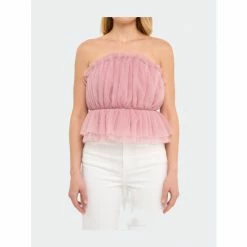 This tulle peplum top is perfect for your next special event. The strapless design is both elegant and timeless, while the pleated tulle adds a touch of whimsy. The back zipper closure ensures a perfect fit, while the peplum hem adds a bit of drama. The top is fully lined for your comfort.