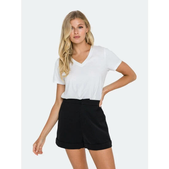 – Metal zipper at front- Pockets at side- Interior button at front- Folded hem- Total length: 13″, waist: 26.50″