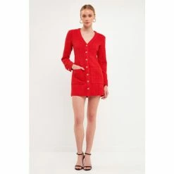 This textured dress is perfect for a day or night out. The button-down detailing gives this mini dress a sophisticated touch. Throw it on with some sandals or heels and you’re ready to go. With long sleeves and a V-neckline, this dress is perfect for cooler temps. The button closure ensures a perfect fit. You’ll love the way you look and feel in this dress.