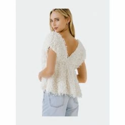 Get this cute, cozy and stylish textured top with a plunging neckline! You’ll love the soft furry texture of this adorable feminine top. It’s the perfect go-to for any season. Wear it alone or layer it with a jacket or blazer. Pair it with jeans or leggings for a casual look or dress it up with a pencil skirt for work.