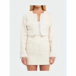 This Trimmed Feather Cropped Blazer by Endless Rose is the perfect choice for your next formal event. The blazer features a tweed fabric, feather trim, round neckline, and front pocket. This cropped blazer adds a touch of luxury to any outfit. Perfect for work or play, this blazer is sure to become a go-to in your wardrobe.