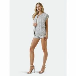 The perfect high waisted shorts that will add the sparkle of style to any tops from your closet. The soft tweed fabric will have you never want to take it off. Pockets also available to store anything you need. Complete your look with matching set of oversized tweed vest available from endless rose.