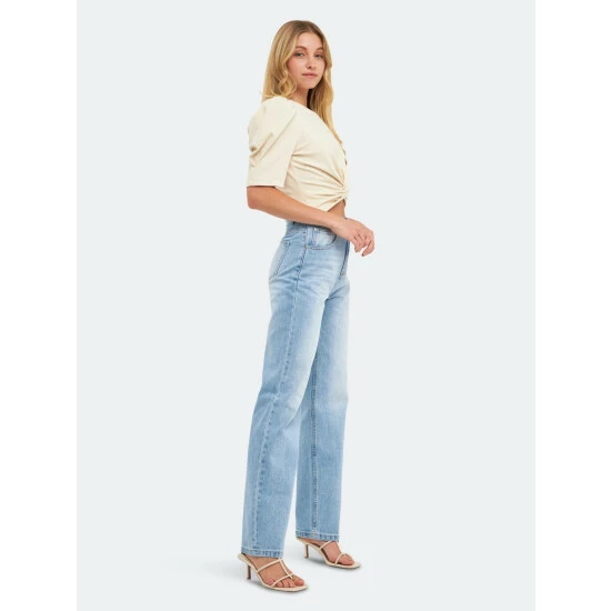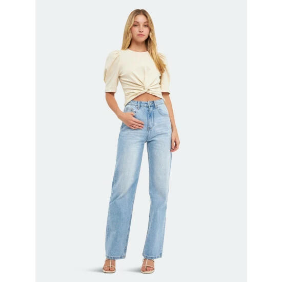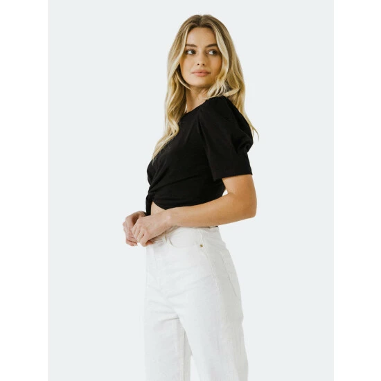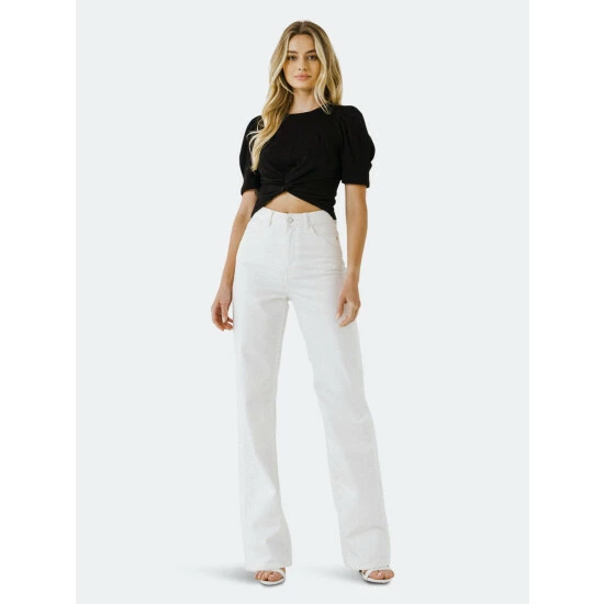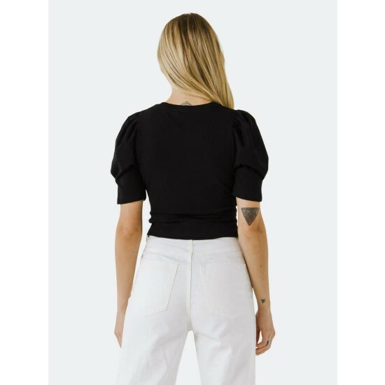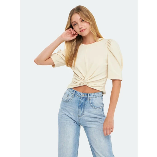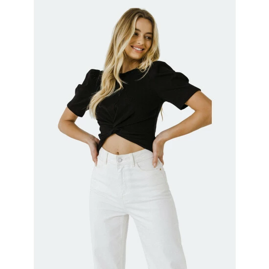 – Short sleeve- Cropped- Front twist detail- Round neckline- Total length: 17.5″, Bust: 34″