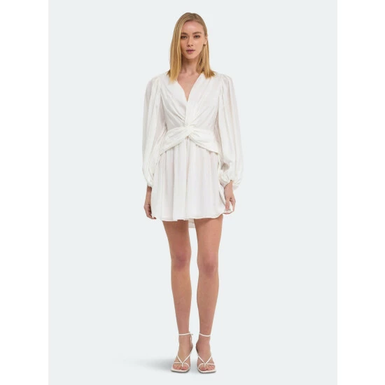 Looking for a stylish little white dress that’s perfect for any occasion? Look no further than our Twist Front Draped Mini Dress! This cute and flattering dress is made from lightweight white fabric and has long sleeves. The twist front detail drapes beautifully and creates a flattering silhouette, while the mini length makes it perfect for any event. Add some sparkle with statement earrings and pumps, or keep things casual with sandals and a clutch. No matter how you style it, this versatile mini dress is sure to turn heads!