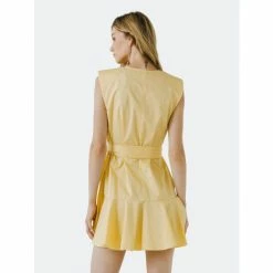 Let this dress make a statement. The plunging neckline and ruffle hemline will catch the eye, while the bow tie belt and pockets provide some subtle details. This dress is made of a cotton-blend fabric that is soft to the touch. Pair this dress with heels or flats and wear it to a formal event or dress it down with flats for a night out.