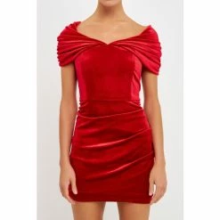 Make a statement in this show-stopping mini dress. In a luxurious velvet fabric, this bodycon dress is designed with a draped off-the-shoulder silhouette and draped drop-shoulder detailing. It falls to a mini length, making it perfect for your next party or night out. Add some strappy heels and statement earrings to complete the look.