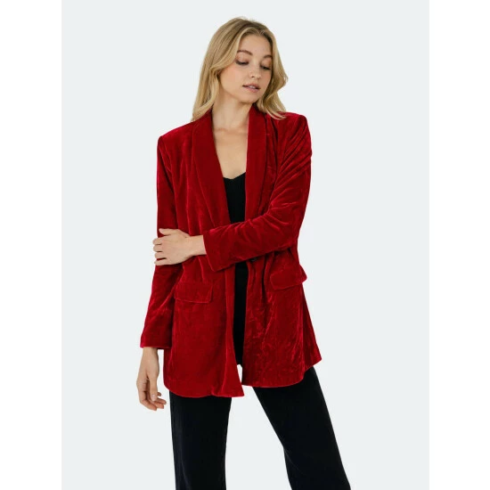 – Loose fit velvet blazer- Pocket on front- Long sleeves- One button at the front