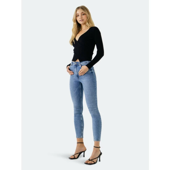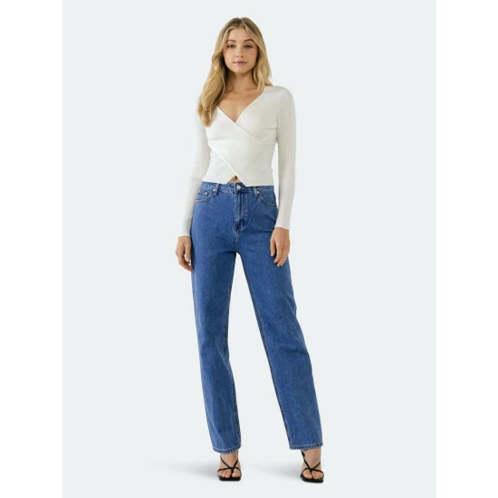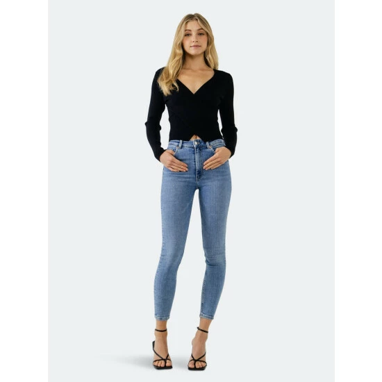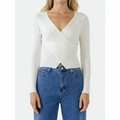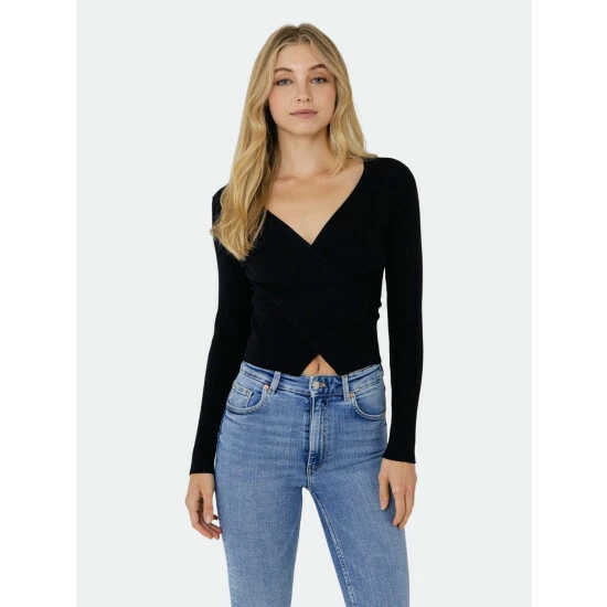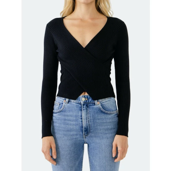 The perfect top to throw on without a second thought. The neckline is detailed with a double row of wrapped knit. This sweater is so easy to style and the fitted look will make you look amazing.